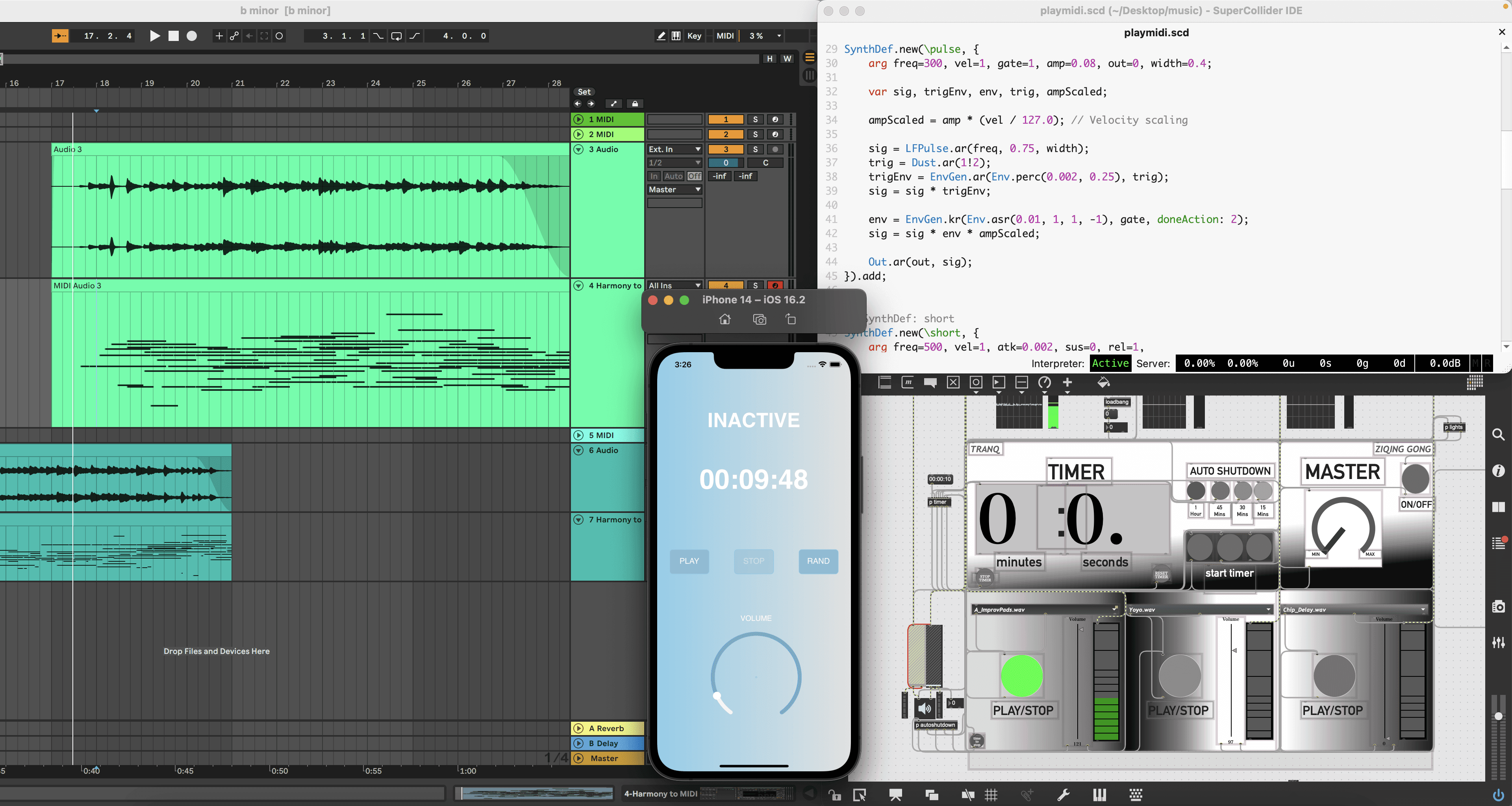 Experience gained from designing interactive music environments and digital instruments, from collaborative game-audio systems to music-software contexts, directly feeds back into Gong’s compositional thinking. Central to his work is an interest in dynamic relationships, in how one musical or sonic parameter can modulate another, and how evolving networks of control shape perception, timing, and musical behavior. Whether working with generative algorithms, interactive structures, or studio-based composition, his practice asks how contemporary composition can expand what it means to “write music” in computational and immersive environments, and how these systems can create listening experiences that are not only heard, but entered.
